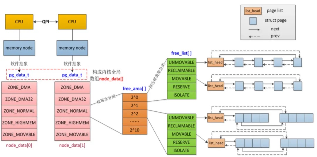 基本上大家了解到了物理内存管理的最小单位是Page。大体内核对于物理内存的管理是这样的。