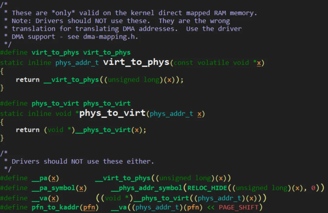 经常在使用的虚拟地址与实际地址转化的函数__pa和__va.