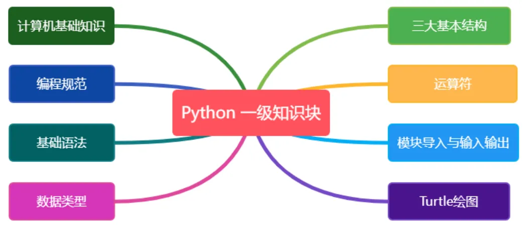 操作系统:了解 Windows、Linux 的基本概念及常见操作硬件组成:CPU、内存、硬盘、鼠标、键盘等基本部件网络基础:知道什么是计算机网络协议(如 TCP/IP)和互联网文件管理:· 文件类型(文本、视频、音频)· 文件大小概念(字节、KB、MB)· 编程文件的创建、复制、粘贴、删除、移动、保存开发环境:会使用 IDLE、PyCharm 等环境编写运行代码备考建议:平时多练习新建、保存 .py 文件,熟悉文件夹路径和文件操作。【2】编程规范