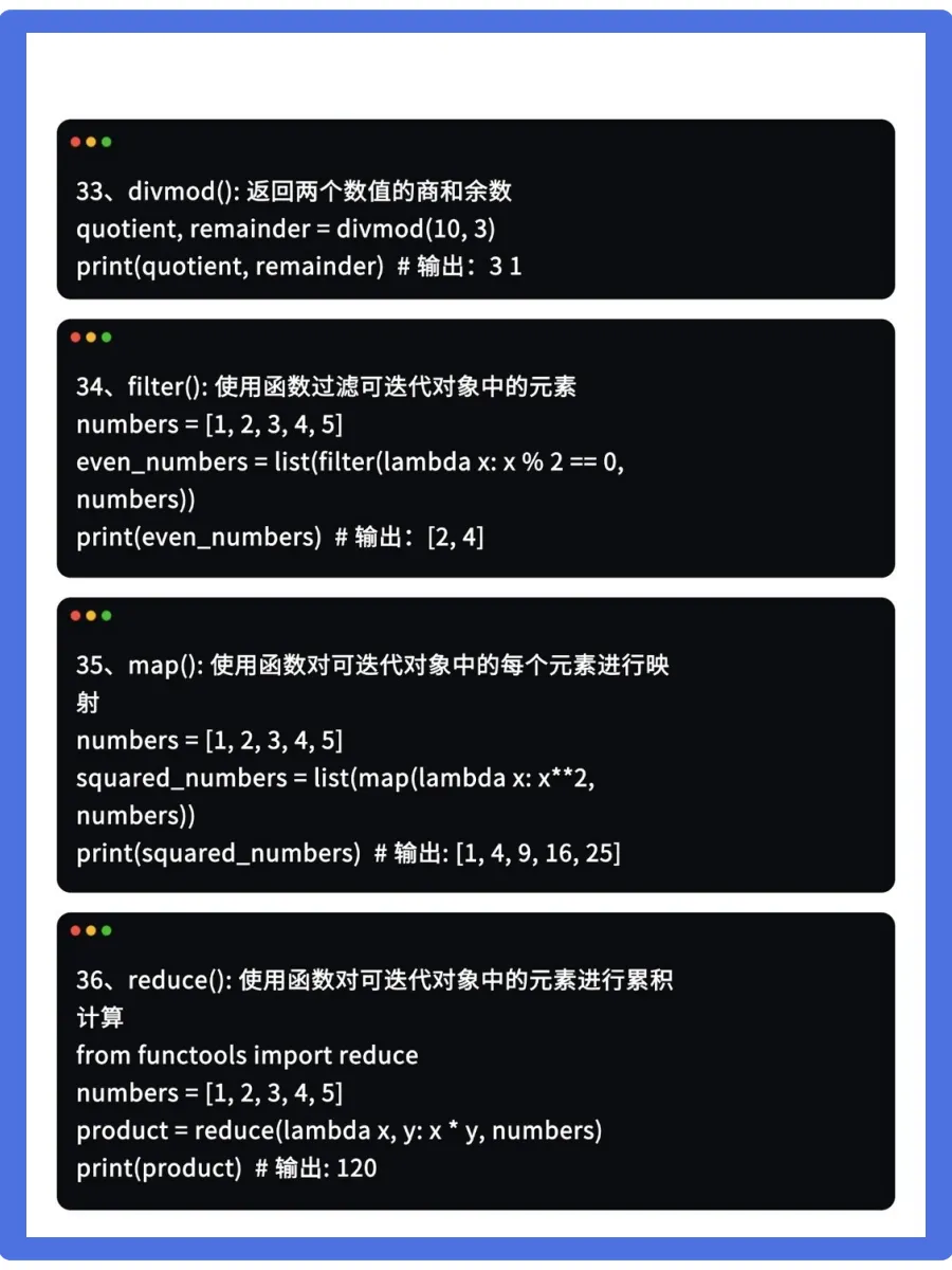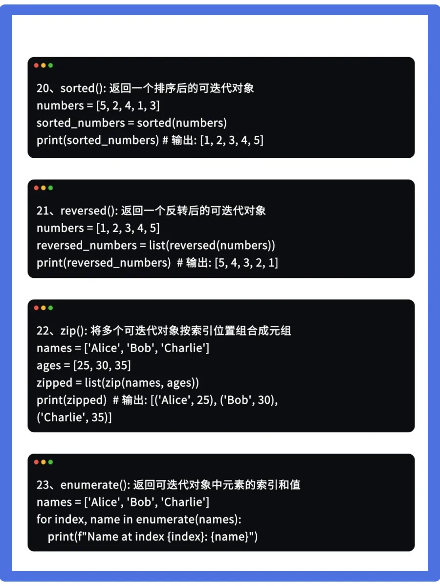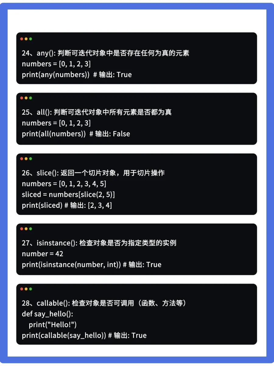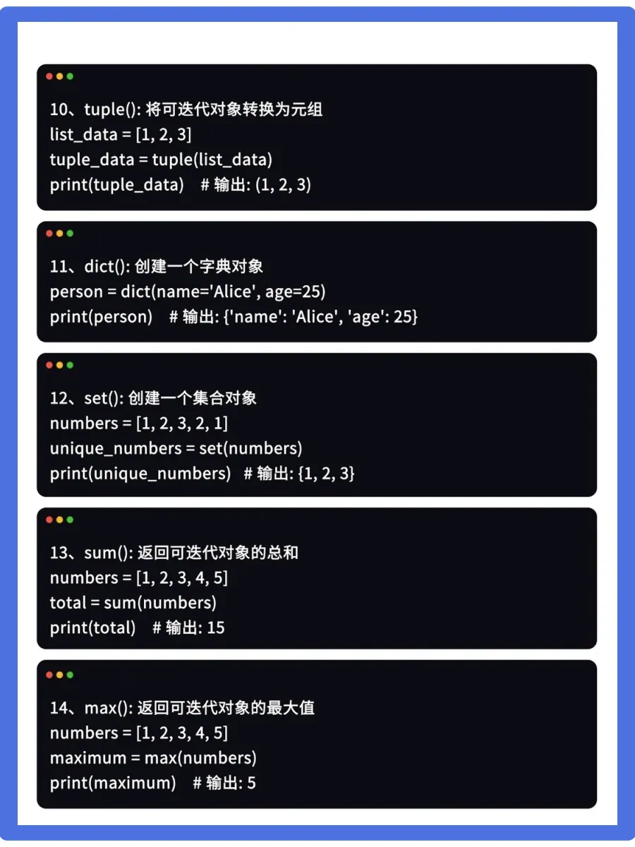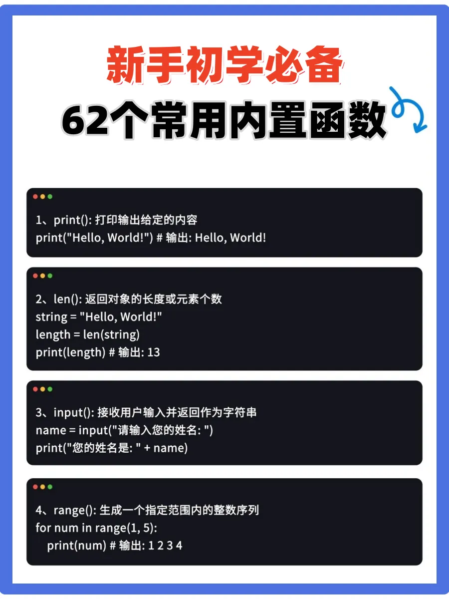 对于初学 Python 的小伙伴们来说,掌握内置常用函数是学好 Python 的重要一步。这些函数不仅能让你的代码更加简洁,还可以提高编程效率。