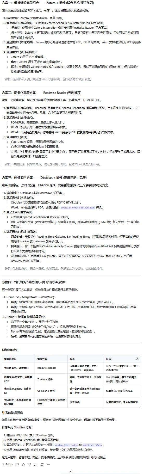 参考了Qwen给我的推荐,我尝试了其中最有可能实现的Obsidian+Space Repition插件方案,但仍局限于以下三方面的不足: