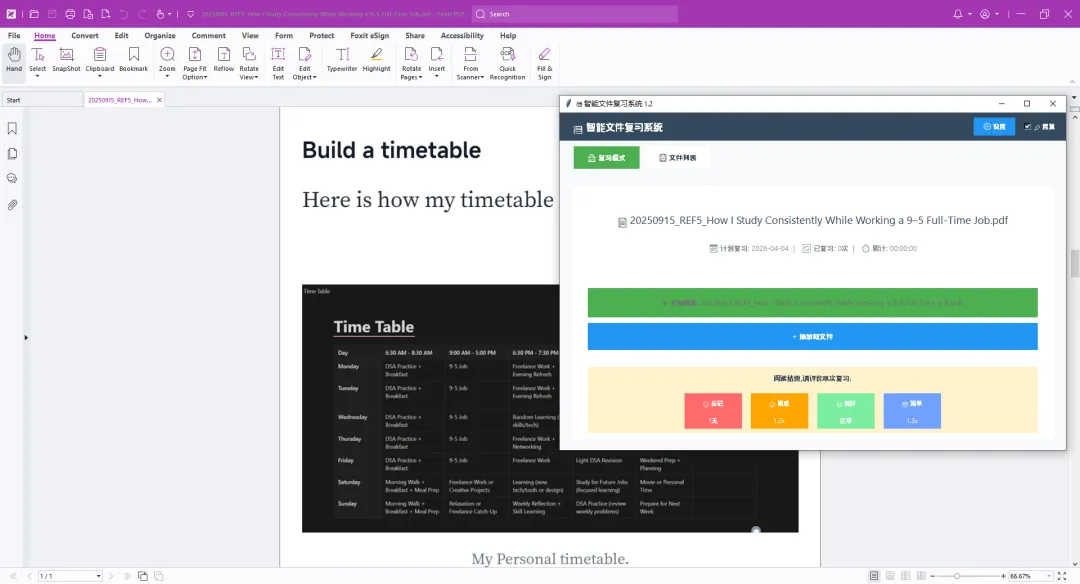 今天上午,由于问题没解决,我不甘心,就让Qwen按照遗忘曲线规律的算法写了一个自动安排复习任务计划的Python脚本,终于一个轻量级小工具——智能文件复习系统诞生了!