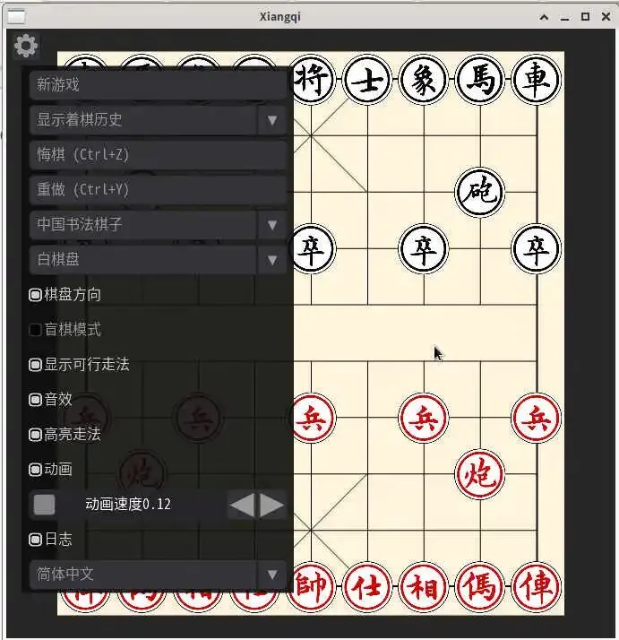 * xiangqi: 中国象棋的 图形界面。默认为英文界面,但是可以改成中文。棋子也可以改成中文文字样式。