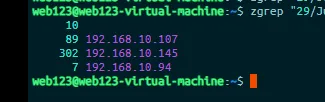 # 统计这个时间段里出现过的源 IPzgrep "29/Jun/2025:1[1-4]:" /var/log/apache2/access.log* \| grep -v gobuster \| sort -t "[" -k 2 \| awk '{print $1}' \| cut -d: -f2 \| sort \| uniq -c