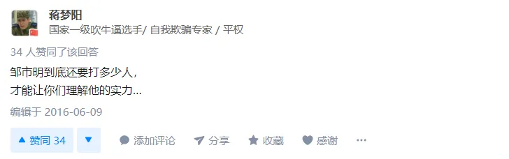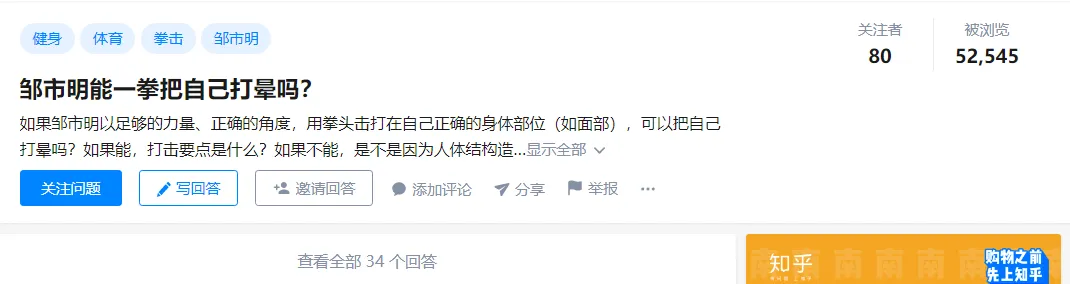 森麟小结:知乎上各种关于邹市明能打多少人的问题层出不穷,没想到最终还是要向自己动手。https://www.zhihu.com/question/25016659森麟小结:这个问题就好比有些叫帅帅的人,无论长成什么样,别人都要叫他帅。https://www.zhihu.com/question/27387052森麟小结:珍爱生命,远离袋鼠,切莫为了一个高赞回答去和袋鼠亲身肉搏,否则可能还没来得及分享“刚编出来的故事”就……https://www.zhihu.com/question/48119206森麟小结:希望广大程序员朋友保护好头发,不要有朝一日被邀请回答这个问题。Q:如果地球上所有人同时用激光笔指着月亮,月亮会不会变颜色?