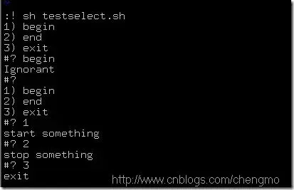 select ch in "begin" "end" "exit"