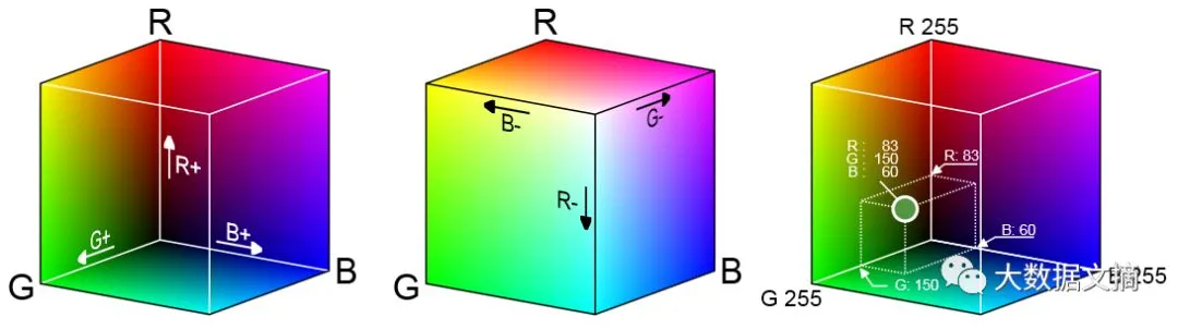 尽管真正的向量空间允许无限数量的像素亮度连续变化,但为了将颜色以数字形式存储在计算机上,我们需要对上述像素范围进行离散处理——通常红色、绿色和蓝色分别用8位通道色表示。这种将像素类比成三维色彩空间坐标的分析方法将为我们接下来的理解与重建提供巨大的帮助。