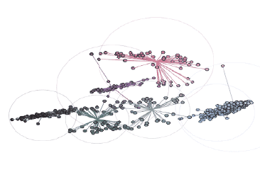 当我们将前景色分离后,会得到与页面上笔记的颜色相对应的一组颜色。将得到的像素点重新放进RGB空间并计算每个像素对应的坐标,可以看到新的散点图呈现簇状,每一个颜色会形成自己的色块: