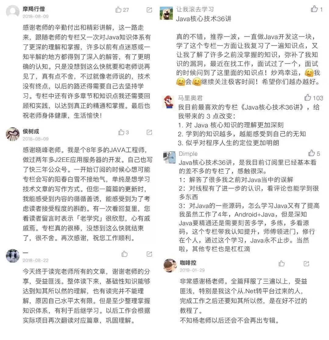 《Java 核心技术 36 讲》专栏读者评价: