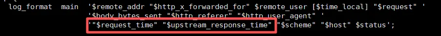 测试的时候需要在nginx日志中打开下面两个参数查看请求处理链路的耗时: