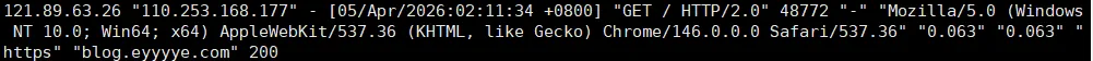 Swap开启后可能会导致性能下降,因为服务器上部署的后端都是通过nginx代理的,我们接下来访问web页面看下nginx的日志。