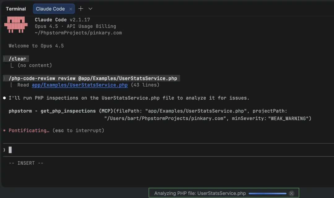 此外,适用于 Claude Code 的 PhpStorm 插件为 Claude Code 提供了使用 PhpStorm MCP 服务器工具的上下文和指令。要将插件的技能和挂钩添加到您的项目中,请前往 PhpStorm 的 Settings | Tools | PHP Claude Skills(设置 | 工具 | PHP Claude 技能)。