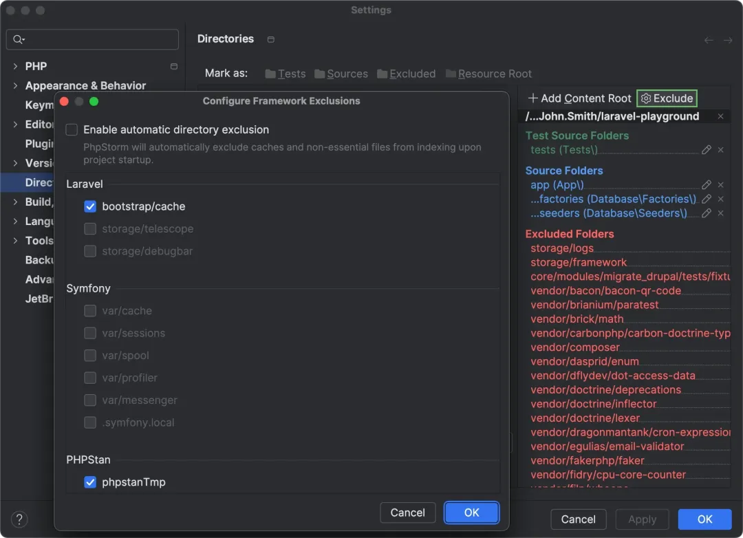 PhpStorm 现在能够自动检测包含频繁更改的生成内容、缓存内容或用户上传内容的框架特定目录,并将这类目录从项目索引中排除。