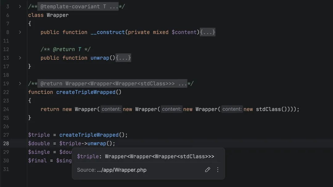 新版本为 PhpStorm 的类型推断引擎带来了多项改进和 bug 修正,包括: