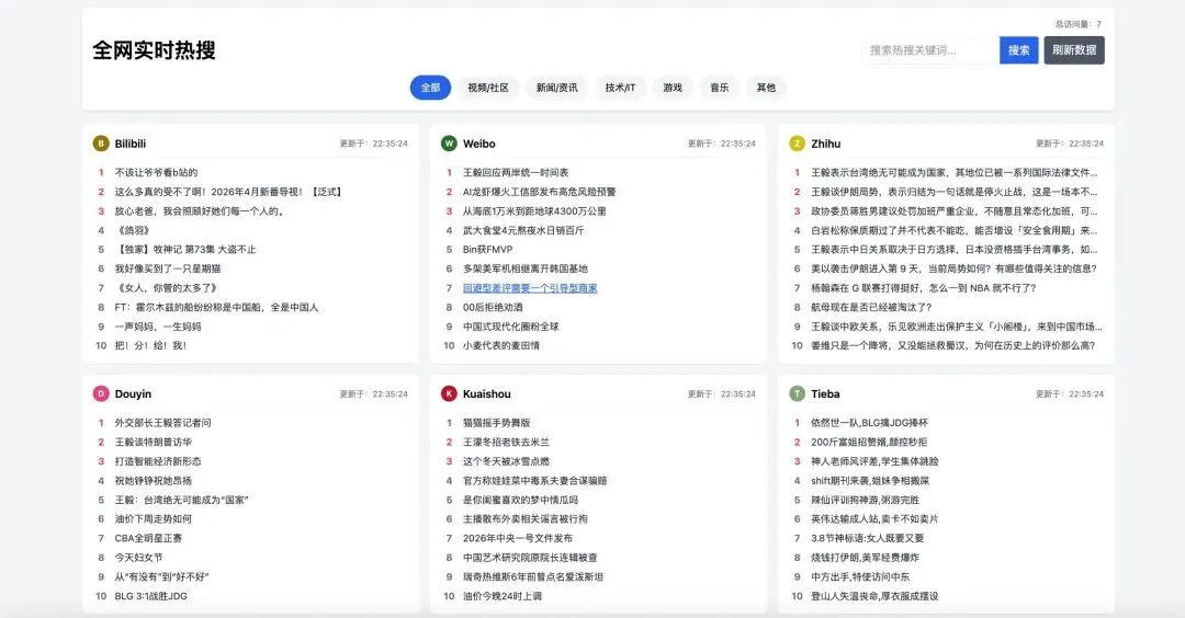 这是一款无需数据库、开箱即用的 PHP 全网热搜聚合源码,集成多平台热搜、分类筛选、搜索、天气预报与访问统计,采用缓存机制优化性能,响应式布局适配所有设备,适合快速搭建实用美观的实时热搜导航站。