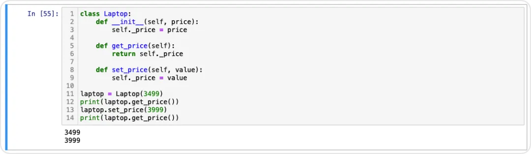 class Laptop: def __init__(self, price): self._price = price def get_price(self): return self._price