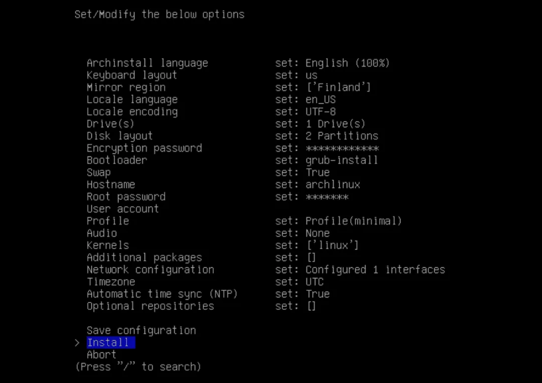 但2021年4月起,官方把archinstall脚本直接塞进安装ISO里!2026年的版本更是“傻瓜式菜单王者”:键盘上下箭头选配置,像填问卷一样点几下就完事。