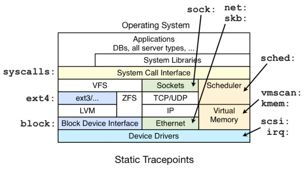 内核中的位置一览(静态tracepoints如何嵌入内核各模块):