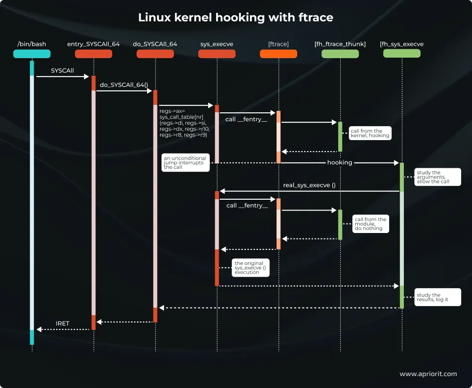 ftrace_caller / ftrace_graph_caller。 - 函数图追踪额外劫持返回地址,实现调用深度 + 入口/出口时间戳 + 时长统计。