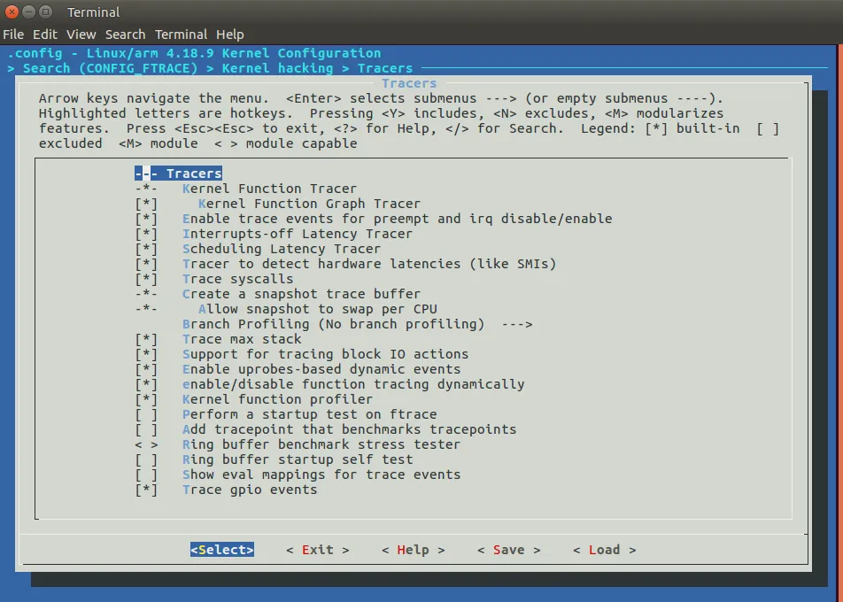 Kernel配置界面(你编译内核时能看到的tracers选项):