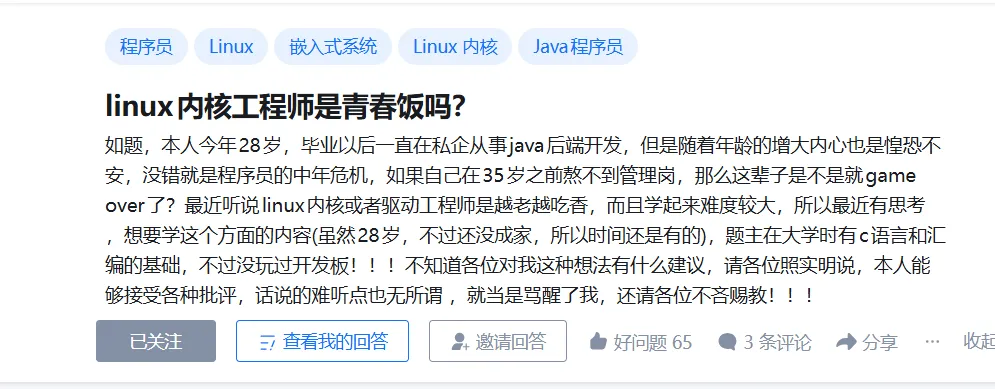 说到底,Linux内核工程师是否是青春饭,答案很明确:若只把它当成一份"写代码"的工作,那必然是青春饭。