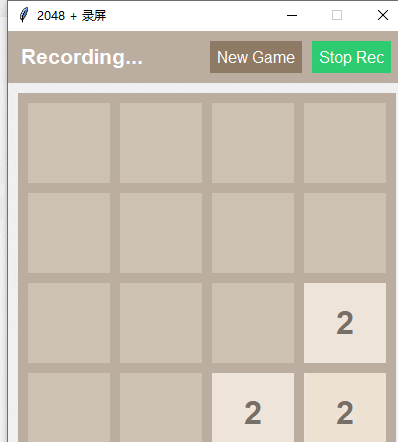 今天,我们尝试利用 Python 自带的 tkinter 库和图像处理库 Pillow,复刻经典的 2048 游戏,并额外实现一个有趣的“内嵌录屏”功能。文章最后附带完整的可执行代码(270行左右),效果如下。