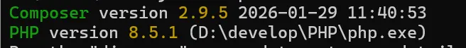 composer --version #输出示例:Composer version 2.9.5 2026-01-29 11:40:53