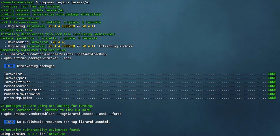 注:以上代码基于 Laravel 13 / AI SDK v0.3。如果你的 Laravel 版本较低,建议先升级。