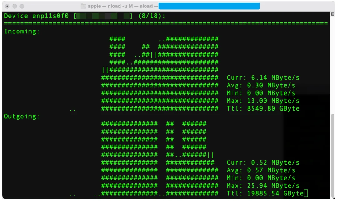 对于云主机来说,流量是很贵的,查看实时流量和流量统计是两项刚需。apt-get install nloadnload -u M