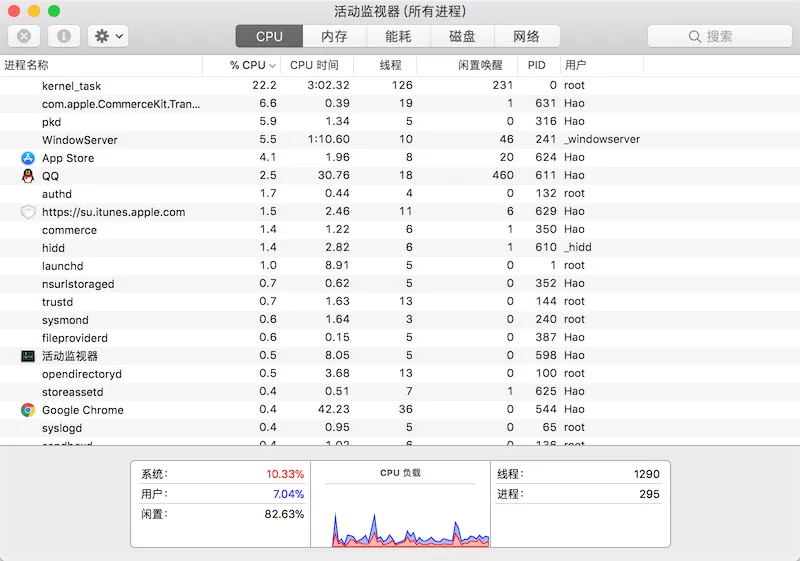 在程序中使用多线程技术,带来的好处不言而喻,最核心的就是提升程序性能、改善用户体验。如今我们使用的绝大多数软件,都用到了多线程技术,这一点可以通过系统自带的进程监控工具验证(如macOS中的“活动监视器”、Windows中的“任务管理器”),如下图所示。