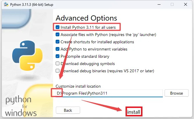 5、勾选“Install...“,选择软件安装路径,建议和教程中的保持一致,本例安装到D盘(将路径地址中的首字符C改为D表示安装到D盘,安装路径不要出现中文),点击“Install”