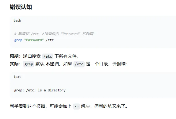 一句话记住两个最要命的坑:rm -rf 要绑好安全带(引号、回收站、黑名单三件套);grep 别乱用大写 R,搜根目录记得先排雷。剩下八个坑,道理都一样:先想后果,先看预览,先上保险。最后送你一条硬建议,别只看,去测试环境里亲手踩一遍(模拟),疼过一次,比看十遍都管用