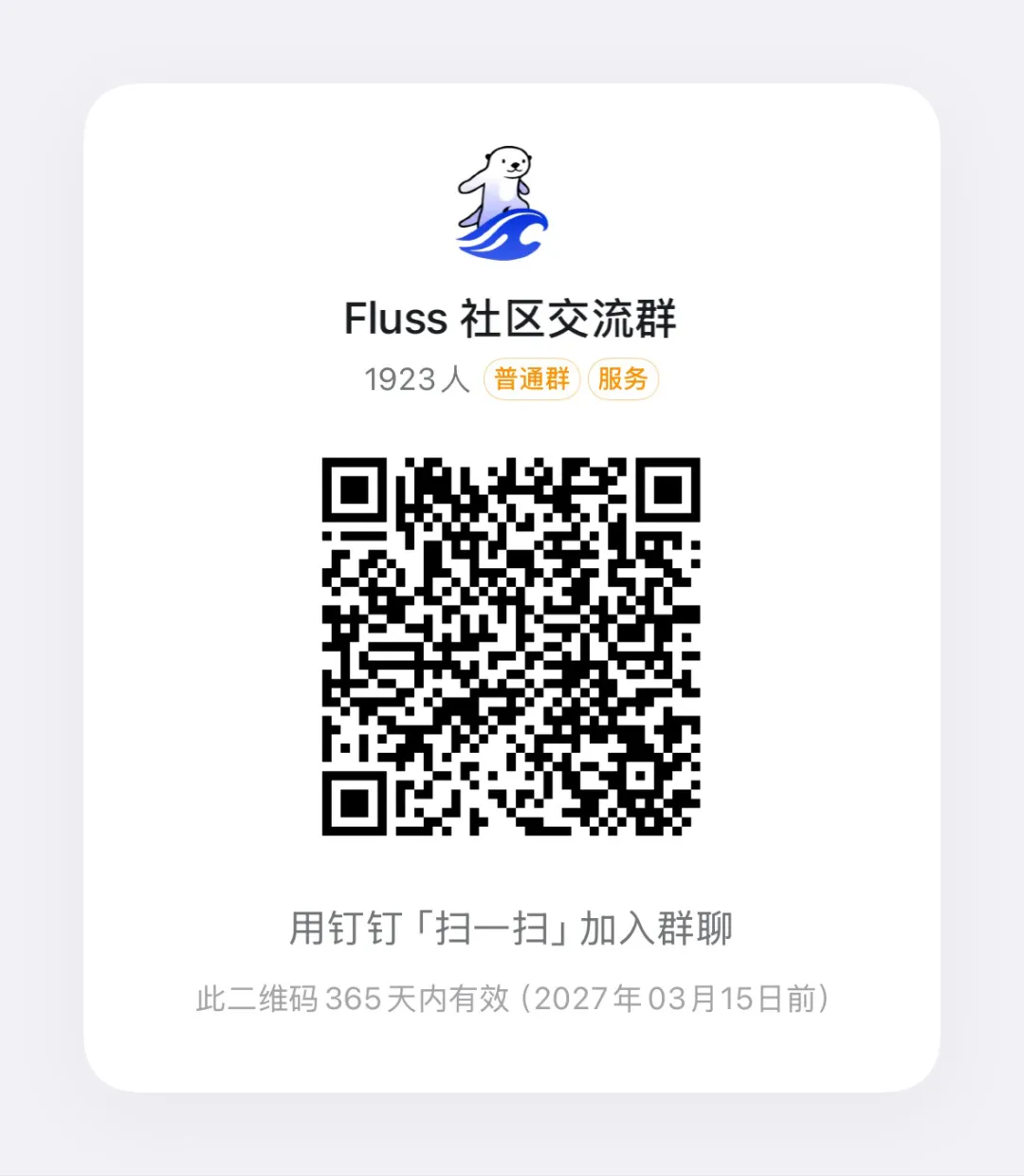 欢迎加入"Fluss 社区交流群"群的钉钉群号: 109135004351