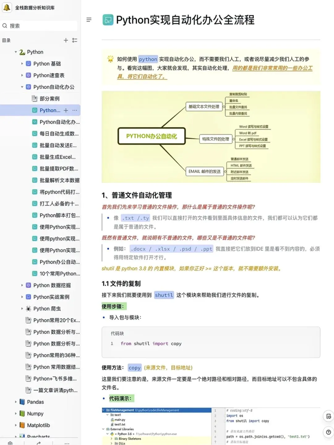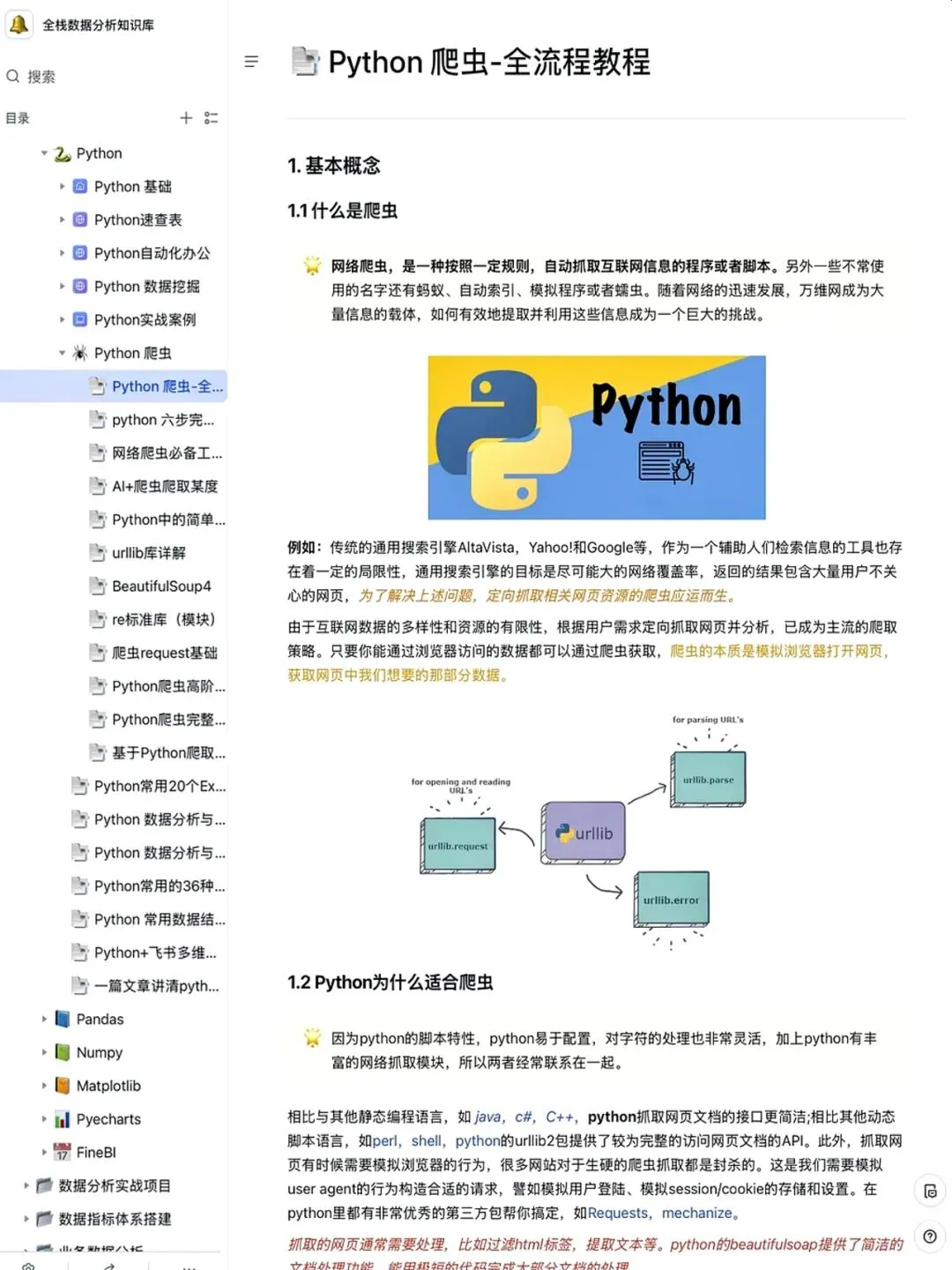 所以特意花了几天时间,整理了这份实战向 Python 资料库。从基础入门→进阶提升→熟练应用,每个知识点都按目录整理得清清楚楚,干货满满。