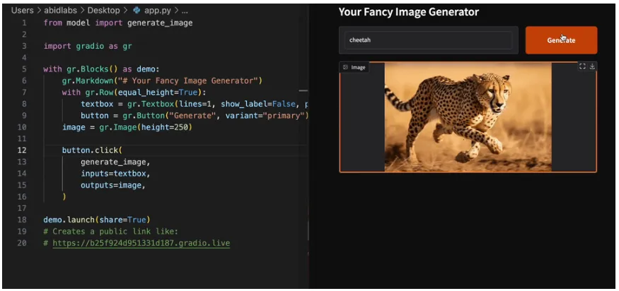 运行这段代码后,你将获得类似于https://a23dsf231adb.gradio.live的公共URL,任何人都可以通过该链接访问你的Gradio演示。