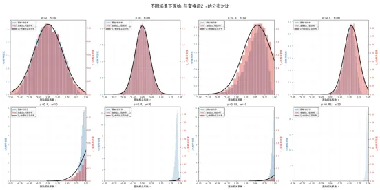 (2)修正分布偏态:通过变换的非线性特性,抵消原始分布的偏态,让变换后的统计量的分布几乎完全对称,即使在小样本、接近的场景下,也能保持极佳的正态性。