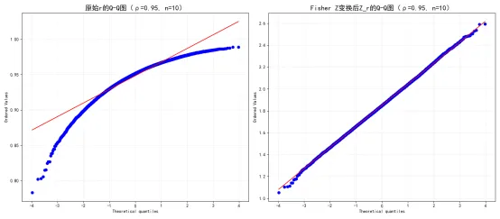变换的统计特性:变换后的Z统计量的期望近似等于总体相关系数对应的Z变换值,方差为常数,与总体相关系数的取值无关,仅由样本量决定,即使在小样本、接近的极端场景下,依然能保持极佳的正态性。