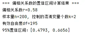 print("=== 偏相关系数的置信区间计算结果 ===")