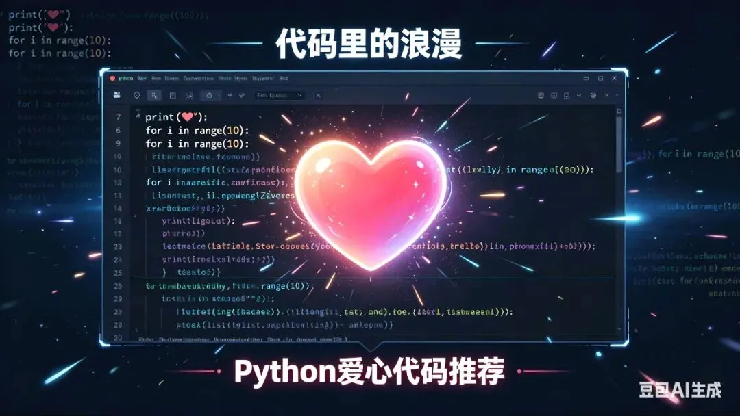 程序员的浪漫,藏在代码里!Python爱心代码,用简洁的代码生成超精致的爱心,可自定义样式、文案,打造专属浪漫。不管是运行出动态爱心,还是生成静态图案,都能把心意藏进代码里,发给TA,就是最硬核的告白,用代码写就专属情书,让爱意在代码里绽放,浪漫又有格调。