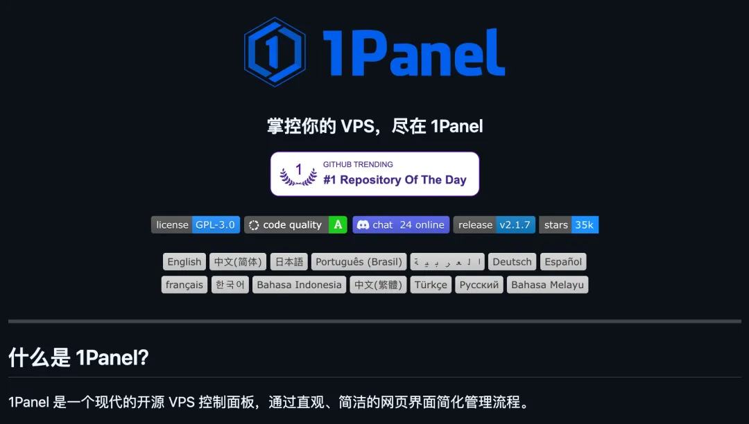 今天就聊聊这个背后的开源项目 1Panel。