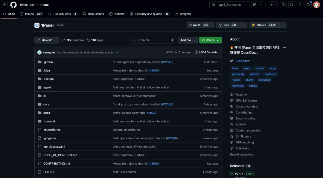 开源地址:https://github.com/1Panel-dev/1Panel