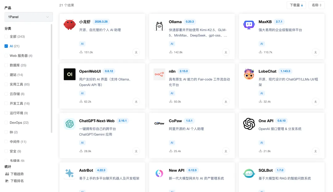 GitHub 上 3 万星的 Linux 管理面板,AI 应用单月下载破 10 万次.