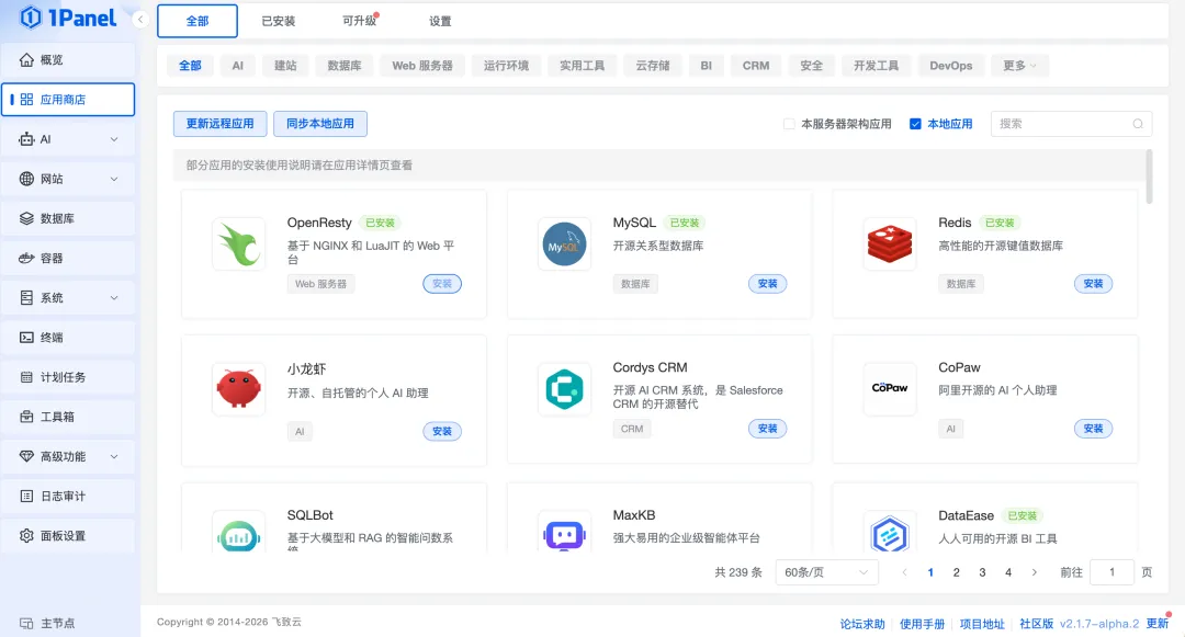 1Panel 正在从一个服务器管理面板,往 AI 智能体分发和管理平台的方向演进。