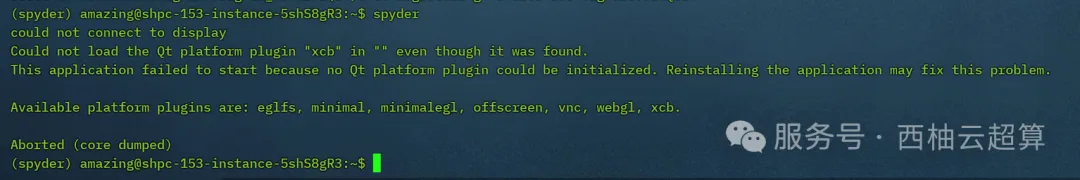 Spyder不像Browser/Server架构的Rstudio Server、Jupyter一样可以基于浏览器访问,Spyder是一个桌面端应用。如果在没有GUI界面的Linux服务器运行Spyder,会直接报错。