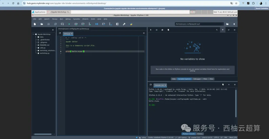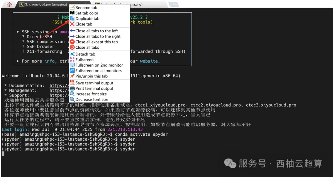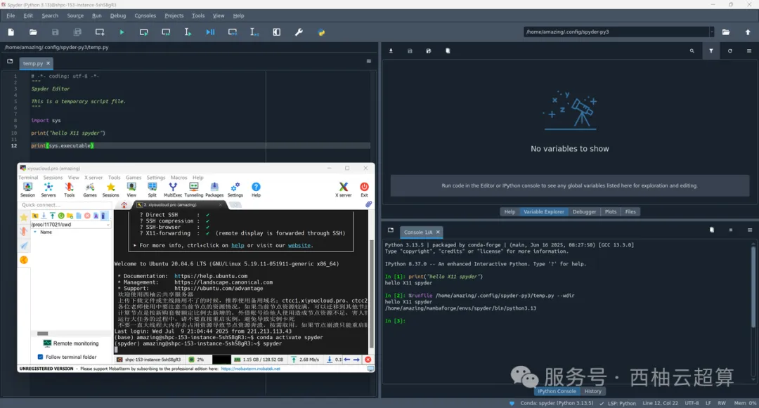 综合体验下来X11转发的方式使用Spyder还算可以,不过比较依赖网络,建议内网使用。如果是走互联网公网访问,有可能出现卡顿等情况影响操作。