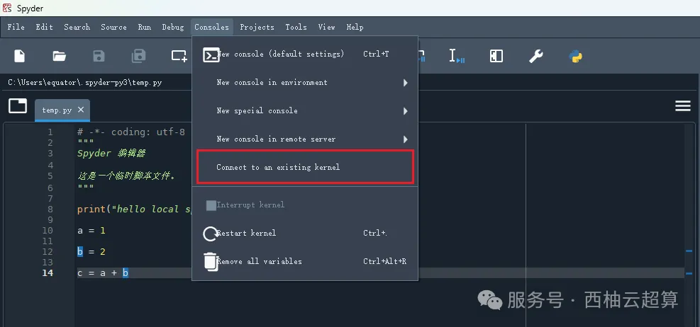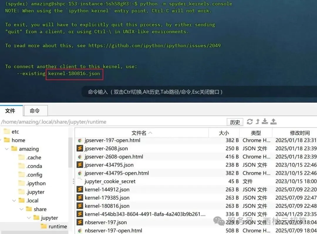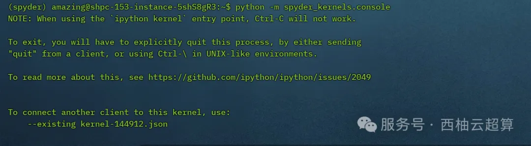 本地的Spyder可以连接远程的内核,在服务器Linux客户端执行下面命令启动一个内核进程。