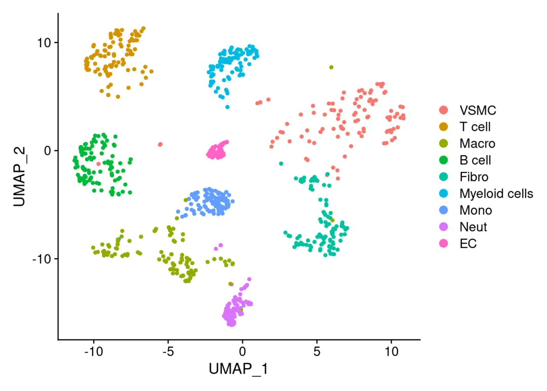 if (!requireNamespace("BiocManager", quietly =TRUE))install.packages("BiocManager")BiocManager::version()## [1] '3.20'#当你的bioconductor版本大于4.0时if(!require(SCENIC))BiocManager::install(c("AUCell", "RcisTarget"),ask = F,update = F);BiocManager::install(c("GENIE3"),ask = F,update = F)#这三个包显然是必须安装的### 可选的包:#AUCell依赖包if(!require(SCENIC))BiocManager::install(c("zoo", "mixtools", "rbokeh"),ask = F,update = F) ###t-SNEs计算依赖包:if(!require(SCENIC))BiocManager::install(c("DT", "NMF", "ComplexHeatmap", "R2HTML", "Rtsne"),ask = F,update = F)# #这几个包用于并行计算,很遗憾,Windows下并不支持,所以做大量数据计算时最好转战linux:if(!require(SCENIC))BiocManager::install(c("doMC", "doRNG"),ask = F,update = F)#可视化输出# To export/visualize in http://scope.aertslab.orgif (!requireNamespace("devtools", quietly =TRUE))install.packages("devtools")if(!require(SCopeLoomR))devtools::install_github("aertslab/SCopeLoomR", build_vignettes =TRUE)#SCopeLoomR用于获取测试数据if (!requireNamespace("arrow", quietly =TRUE)) BiocManager::install('arrow')#这个包不装上在runSCENIC_2_createRegulons那一步会报错,提示'dbs'不存在library(SCENIC)#这就安装好了,试试能不能正常加载if(!require(SCENIC))devtools::install_github("aertslab/SCENIC") packageVersion("SCENIC")#这里我安装的是1.3.1## [1] '1.3.1'library(SCENIC)library(RcisTarget)library(AUCell)library(Seurat)# 初始化SCNIE 设置data(list="motifAnnotations_mgi_v9", package="RcisTarget")motifAnnotations_mgi <- motifAnnotations_mgi_v9scenicOptions <-initializeScenic(org="mgi",#mouse填'mgi', human填'hgnc',fly填'dmel') dbDir="./data/mouse.mm9/", nCores=6)#这里可以设置并行计算## Motif databases selected: ## mm9-500bp-upstream-7species.mc9nr.feather ## mm9-tss-centered-10kb-7species.mc9nr.feather## Using the column 'features' as feature index for the ranking database.## Using the column 'features' as feature index for the ranking database.library(Seurat)# 读取测试对象scRNA <-readRDS('./data/pbmcrenamed.rds') # 查看测试对象降维图:DimPlot(scRNA)