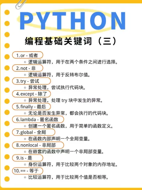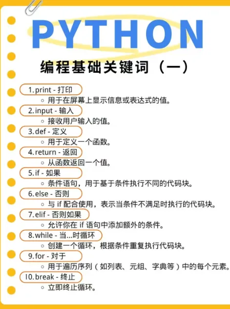 带你学习更多绘画、编程、AIGC、建模、影视后期的干货资料Python,作为当下最热门的编程语言之一,其简洁易懂的语法和强大的功能吸引了无数编程爱好者。无论你是准备入门的新手,还是想要巩固基础的编程者,理解并掌握Python的基础关键词都是必不可少的步骤!今天,就让我们一起来深入解析这些关键词,让你的Python编程之路更加顺畅!输出与输入