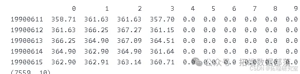 df = pd.read_csv(r'inpv')print(df.head())print(df.shape)此部分代码实现了从 CSV 文件中读取金融数据,并通过打印数据头部和形状,初步了解数据的结构和规模。